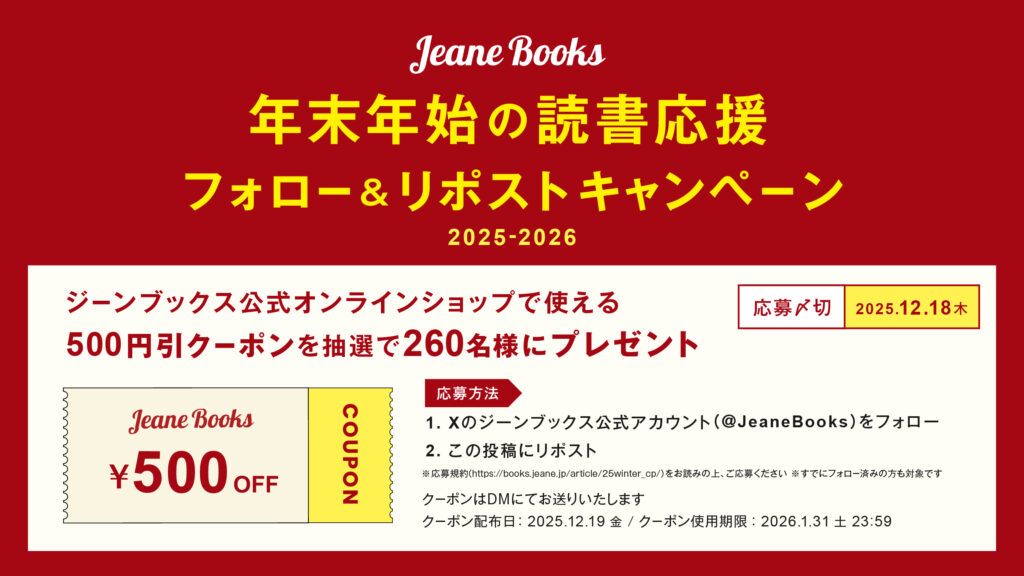 (X版表記「Jeane Books 年末年始の読書応援フォロー&リポストキャンペーン」)