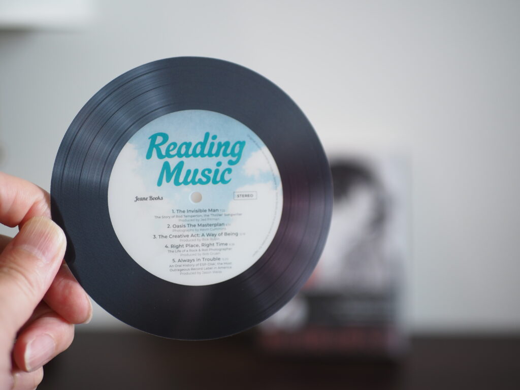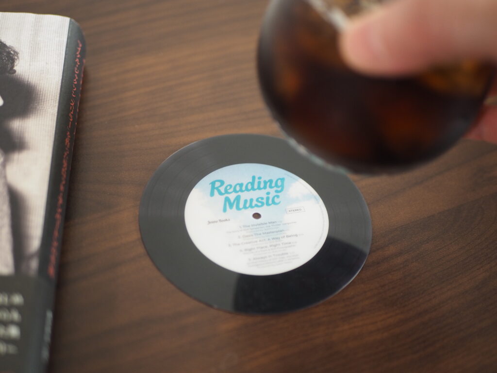 見た目はまるでミニレコード。栞としても、夏の涼を感じるコースターとしてもお使いいただけます。